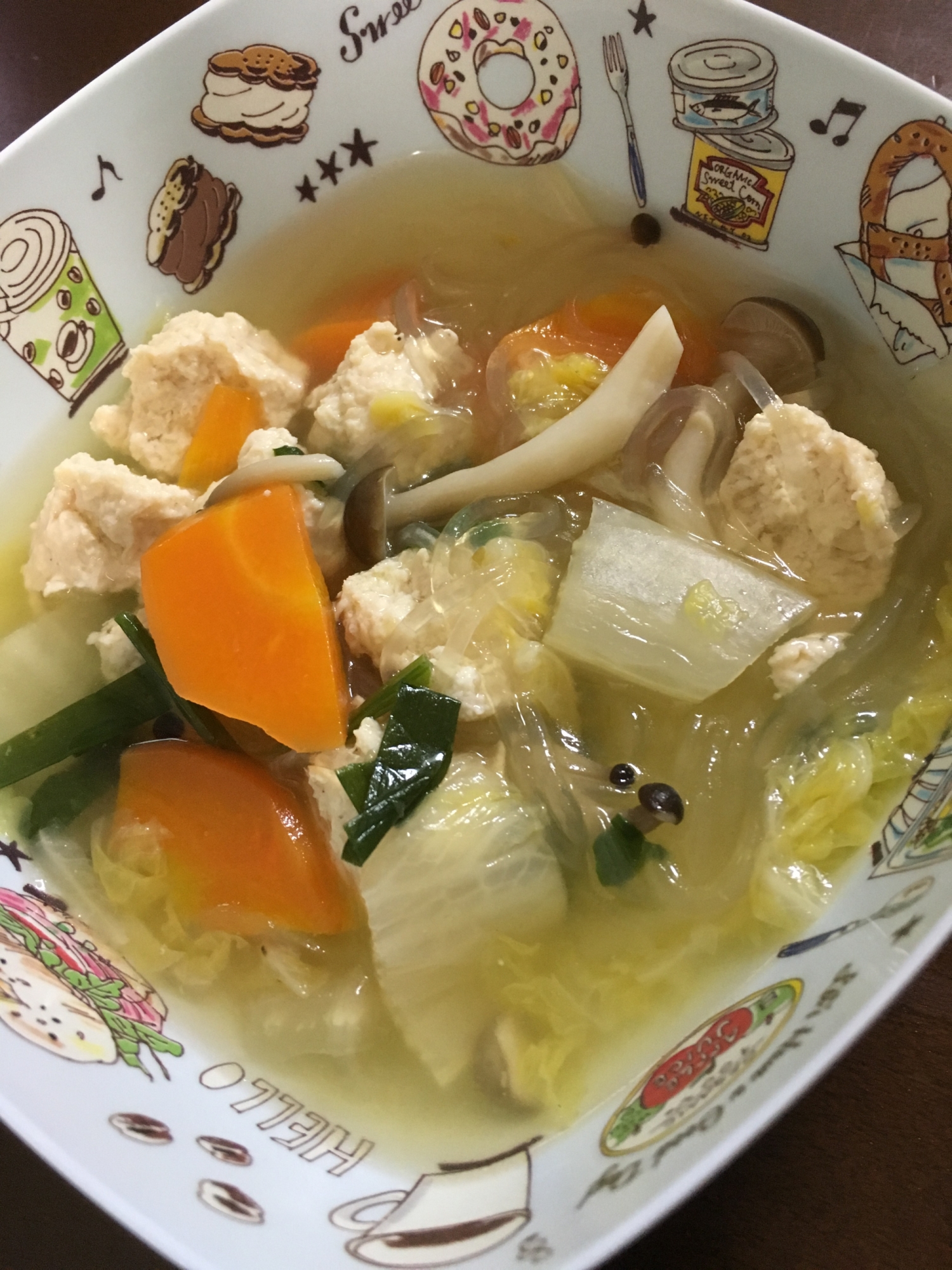 創味シャンタンで作る肉団子と白菜と春雨のスープ鍋 マイホームクッキングダイアリー